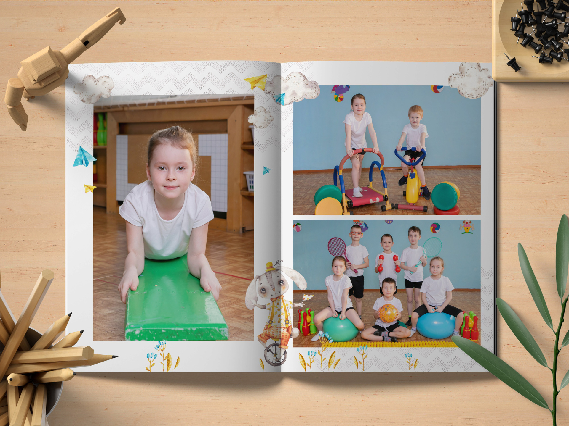 — 2,3 разворот — Постановочные фото в стенах Детского сада (группа, муз. зал, спорт. зал) 7шт.;