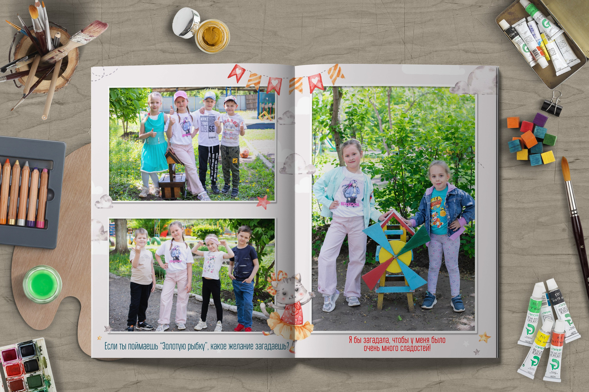 * Обложка общая для всех, при желании можно разместить портрет ребёнка на обложку + 200 руб к стоимости альбома;