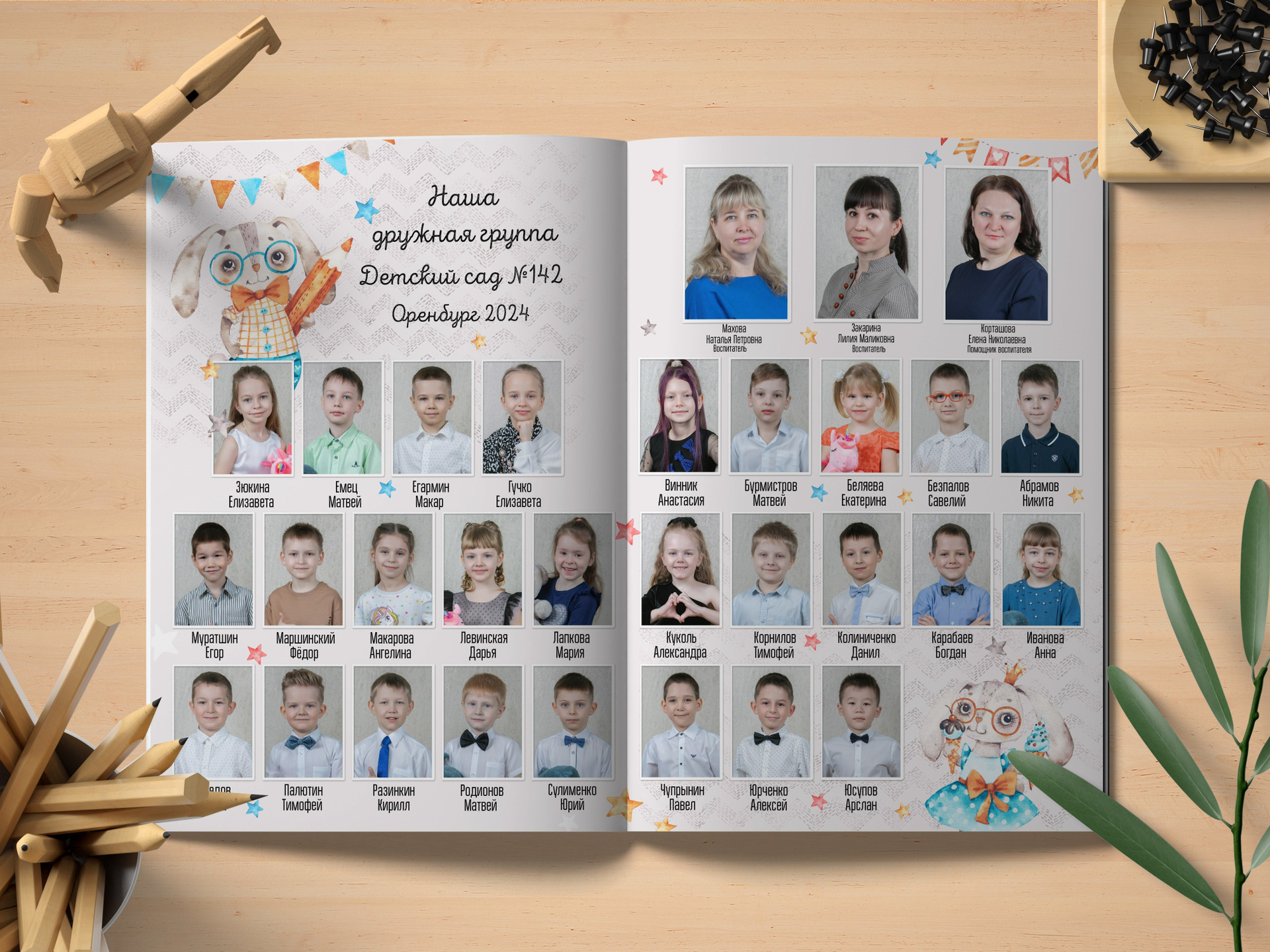 — 5 разворот — Виньетка (портреты всех выпускников и педагогов, с фамилиями и именами)
