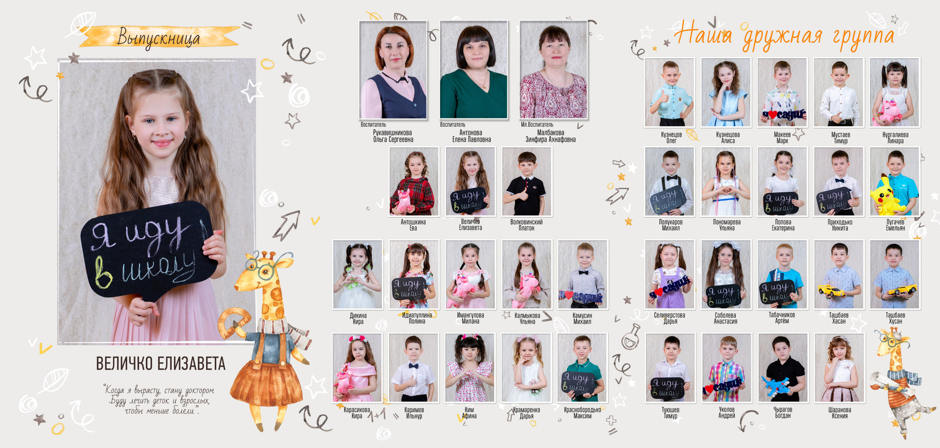 * Родители выбирают Один портрета на обложку самостоятельно в специальной галерее, этот портрет войдёт в виньетку;